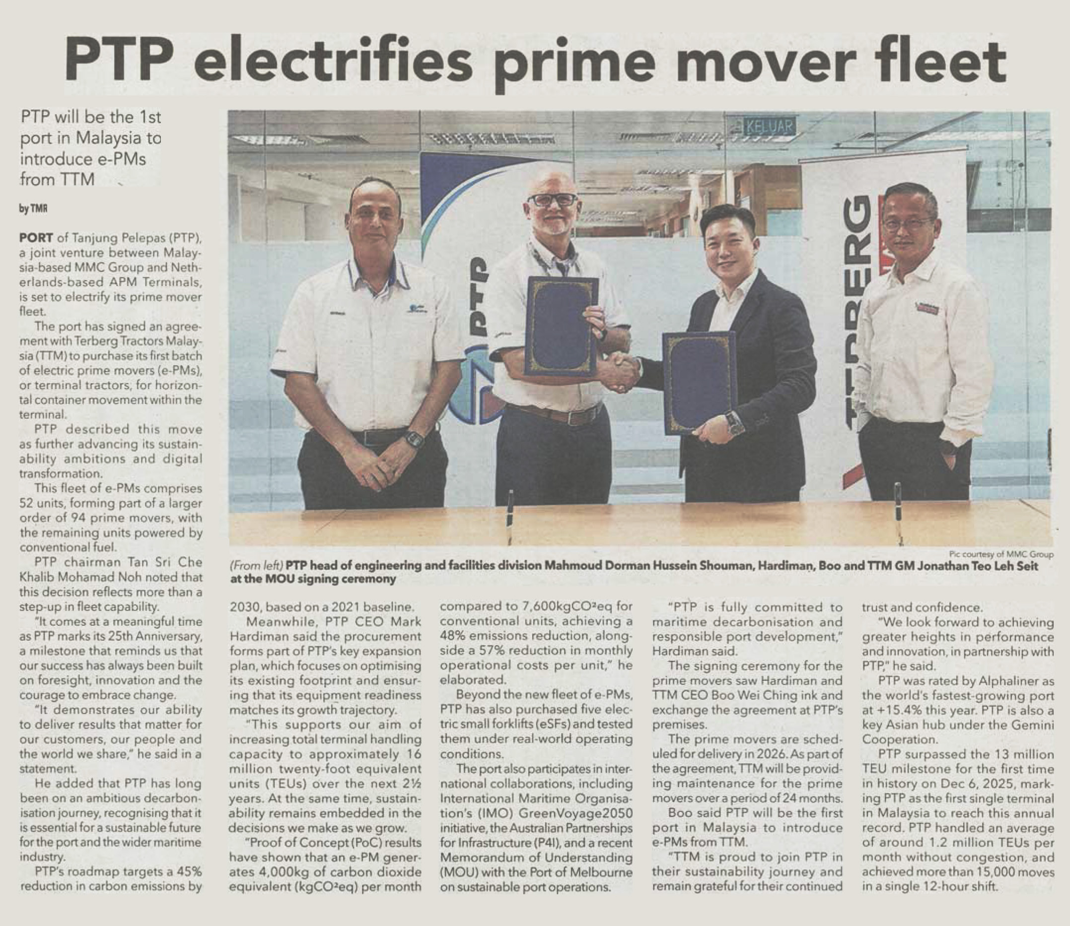 PTP electrifies prime mover mover fleet